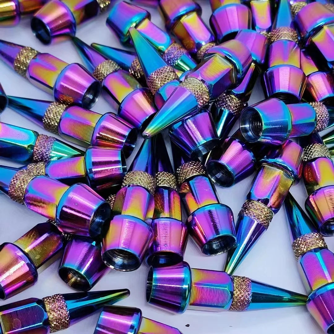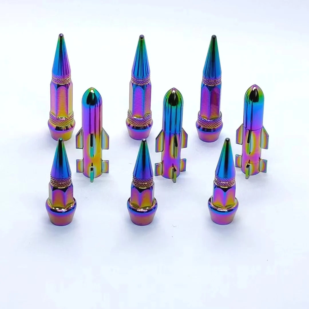 Protect your tire valves in style with this 4 piece set of colorful valve stem caps. Made from durable aluminum or plastic, these caps help keep out dust and moisture while adding a sleek finish to your wheels.