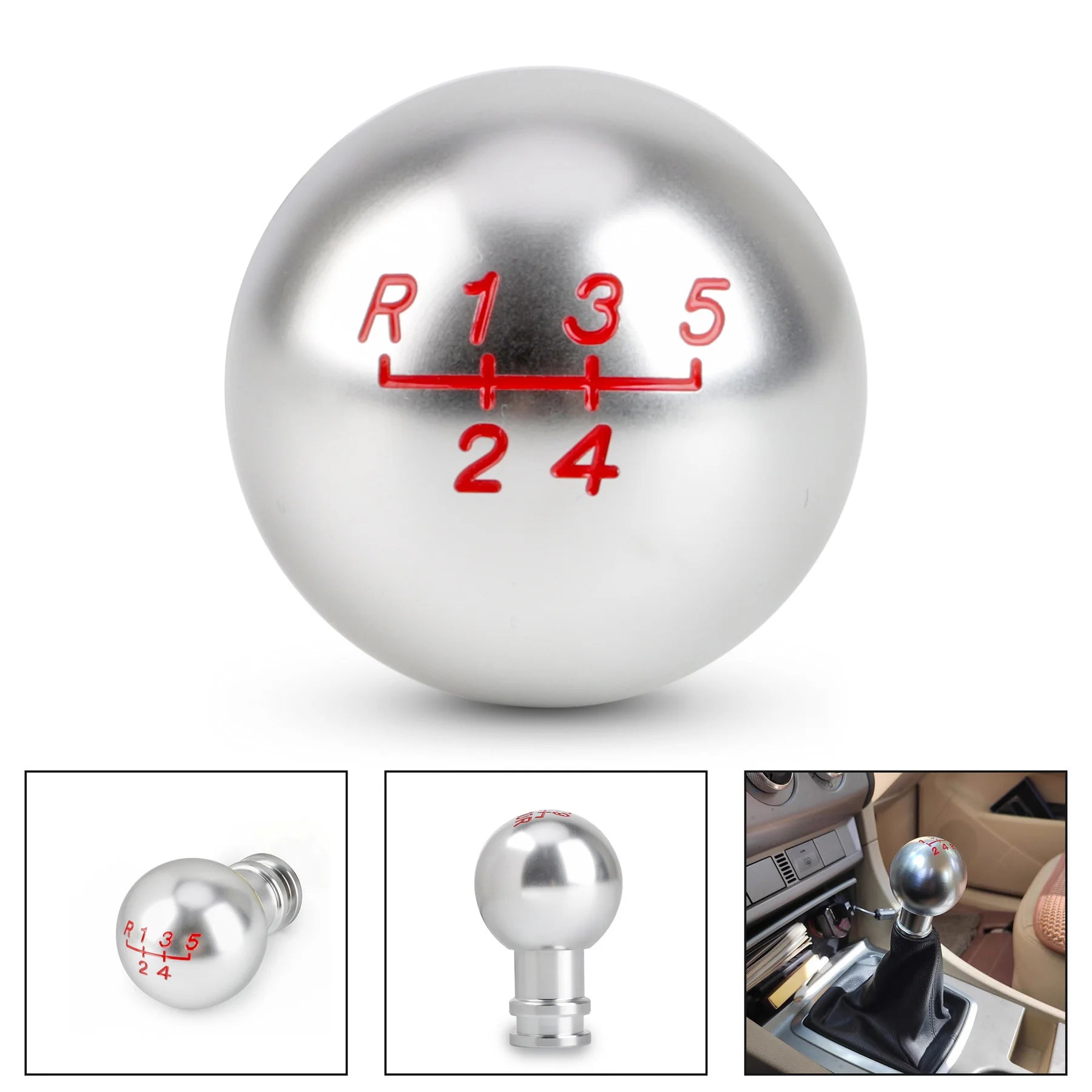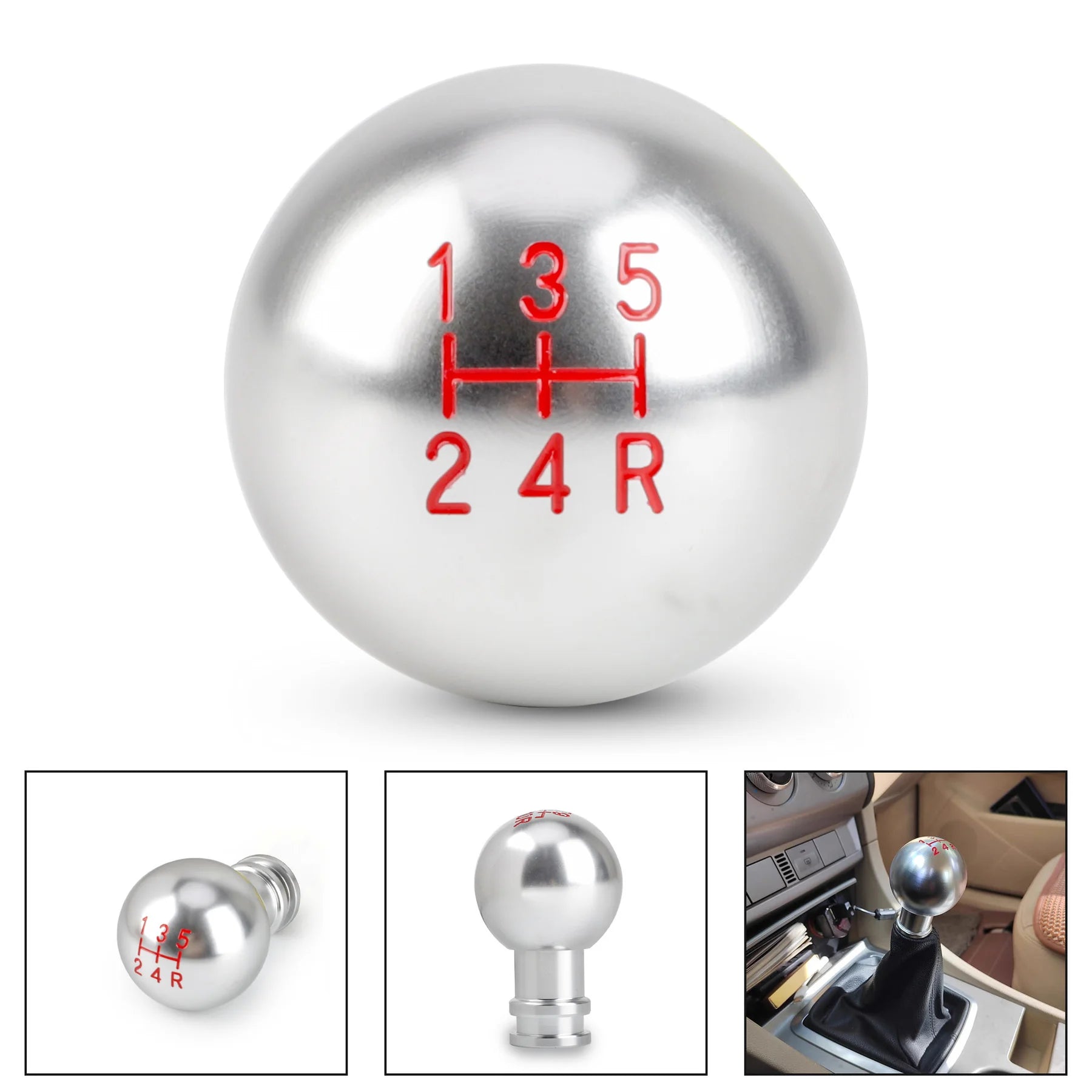 Enhance your driving experience with this sleek aluminum gear shift knob. Designed to fit both manual and automatic transmissions, this knob supports 5, 6, and 10 speed gear patterns and includes multiple thread adapters for easy installation on most vehicles.