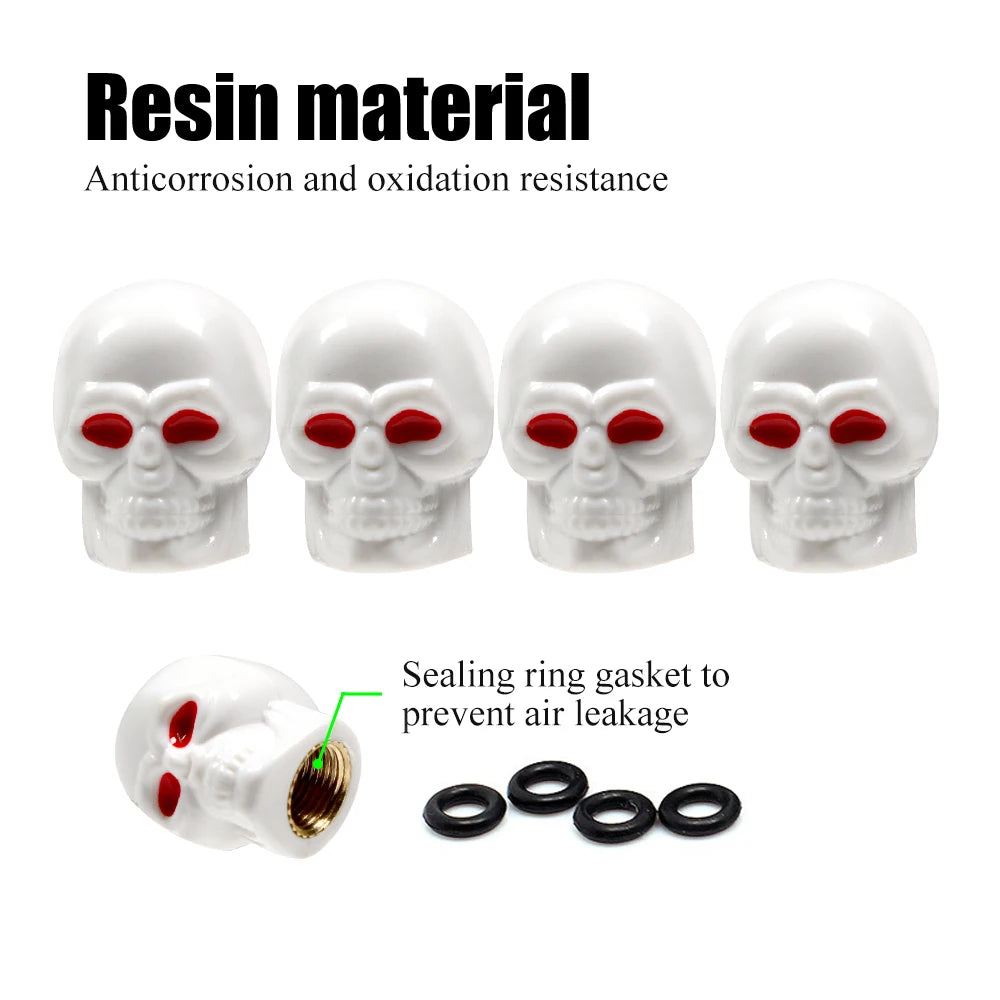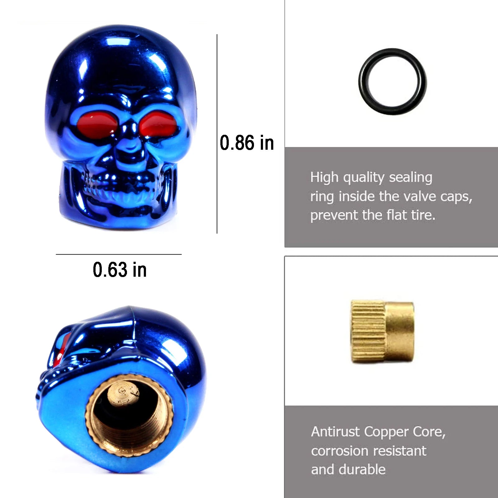 Add a bold touch to your ride with this set of four skull-style valve stem caps. Made with durable plastic and copper core construction, these caps protect your tire valves from dust, dirt, and corrosion while enhancing your car or motorcycle’s personality. A quick and easy upgrade that fits most standard valve stems.