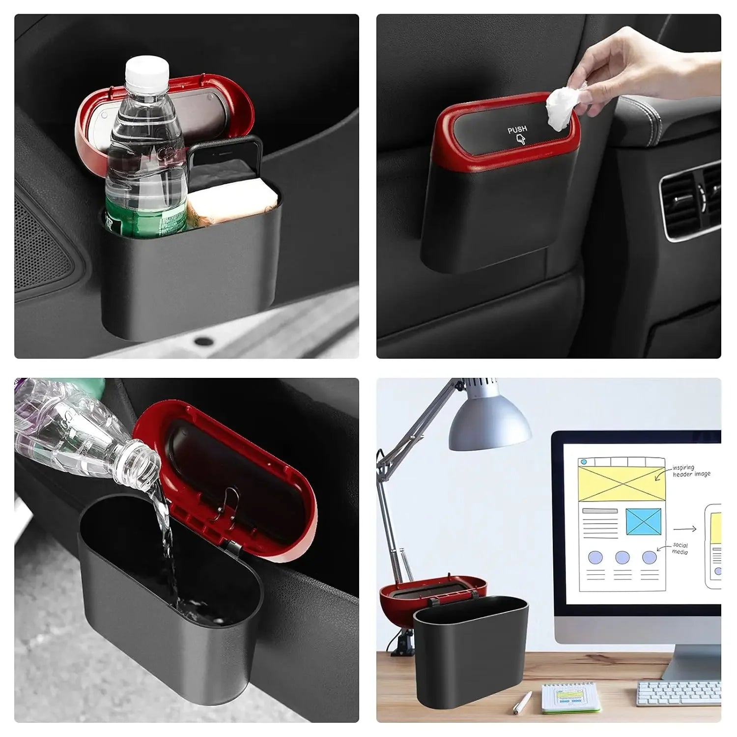 Compact Hanging Car Trash Bin with Lid Push to Open Design for Clean and Organized Interiors