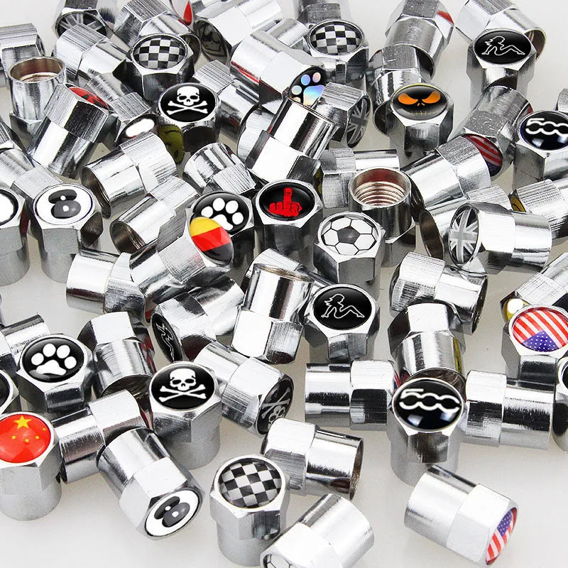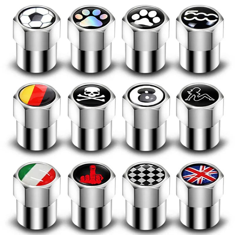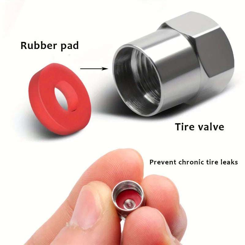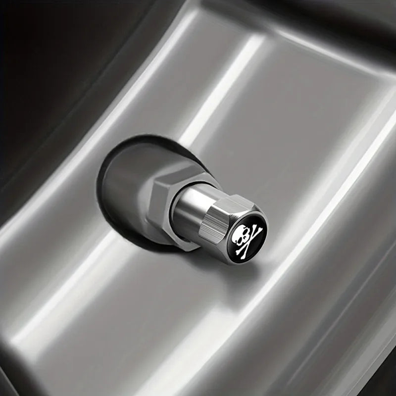 Upgrade your ride with this premium set of four metal tire valve caps. Designed for universal fit on cars, motorcycles, and bicycles, these caps feature a durable aluminum alloy build and rubber seals to help block dirt, moisture, and leaks.