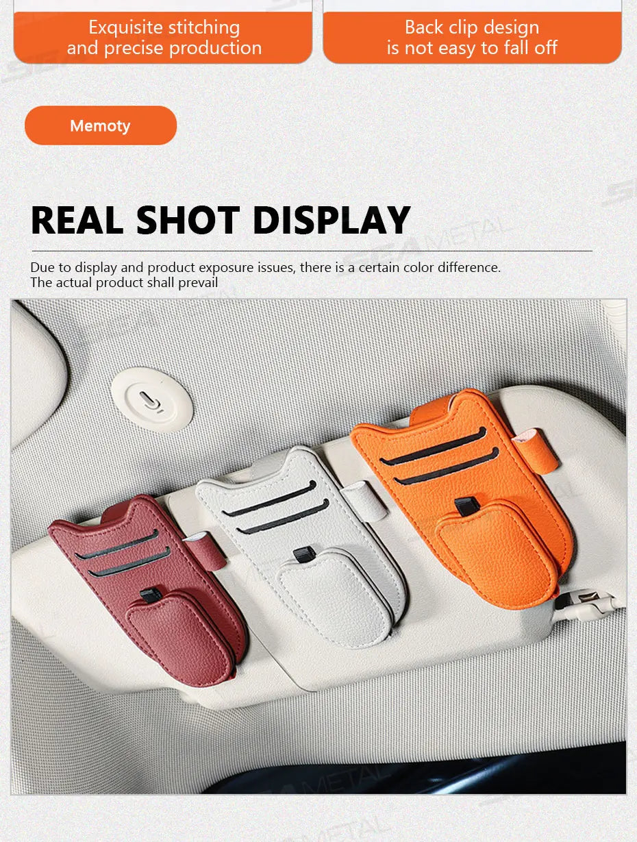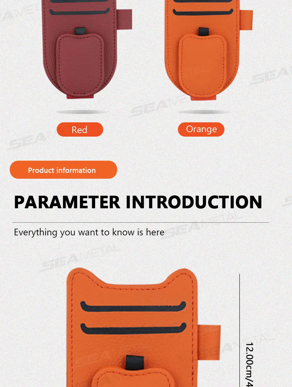 Keep your sunglasses safe and within easy reach with the SEAMETAL Magnetic Car Sun Visor Glasses Holder. Made from premium leatherette, this luxury clip mounts easily to any car sun visor, providing a secure spot to hang your eyeglasses or sunglasses. The strong magnetic design ensures your glasses stay put even on bumpy rides. Universal fit makes it perfect for all vehicles.
